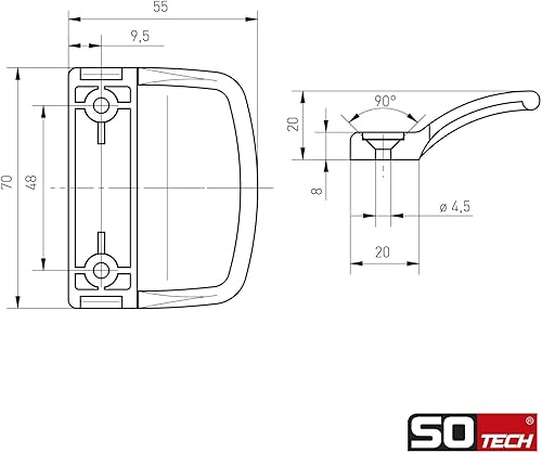 SOTECH Balkontürgriff DOJO RAL 9010 weiß 70 x 55 x 20 mm BA 48 mm Terrassentürgriff Ziehgriff