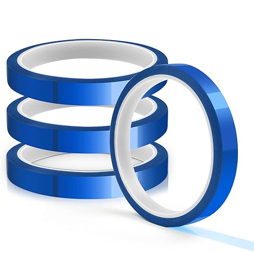 HTVRONT Hitzebeständiges Klebeband - Wärmebänder 4 Rollen 10mm*33m(108 ft), Thermo Klebeband für Wärmepresse, Sublimation für Elektronik Druck DIY Handwerk (Blaue Wärmebänder)