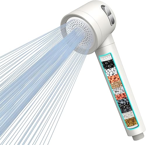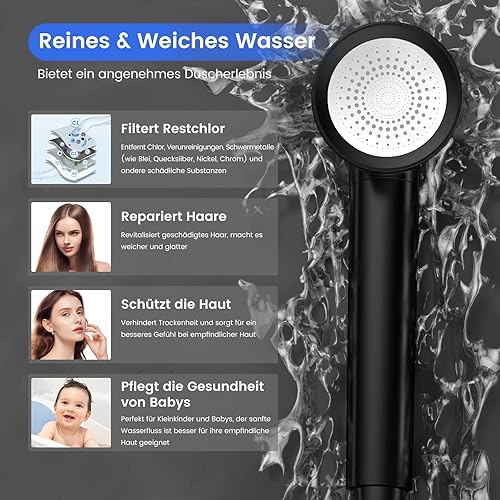 Duschkopf mit Filter MEKO Hochdruck Handbrause mit 15 Schichten Filtersystem, 1,5M Schlauch 3 Strahlarten Wassersparender Duschkopf für Entfernen vom Rest-Chlor, harten Wasser, Schwermetall