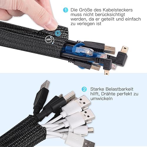 AGPTEK 3m Kabelschlauch, 12-20mm selbstschließend Kabelkanal, Flexibler gewebter Kabelmantel, Kabelmanagement für Schreibtisch, TV, Computer, PC, Kabelschutz für Hund, Katze, Schwarz