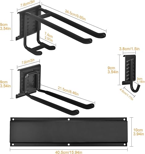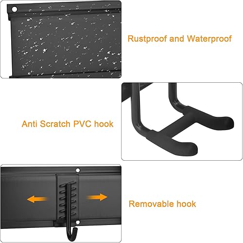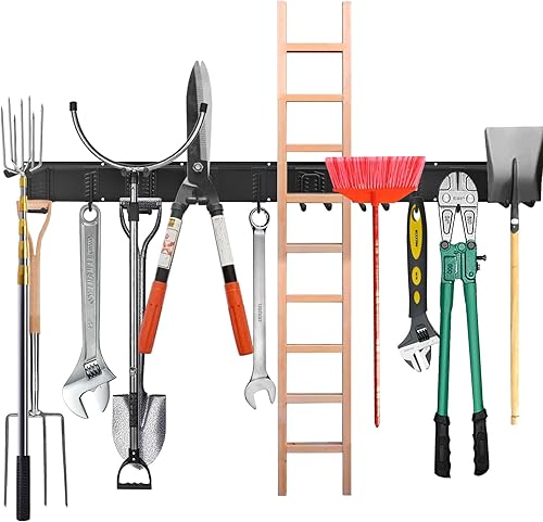 Qupzze Garage Tool Management Wall RackMetall Wandhaken Werkzeugregal für Garage, Keller, Werkstatt, 10 verstellbare Haken, für Besen, Rechen, Werkzeug, Gartengeräte, Skiausrüstung, Stühle