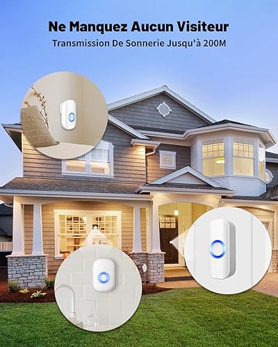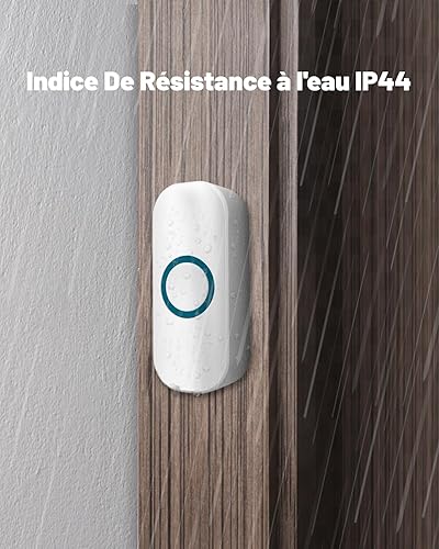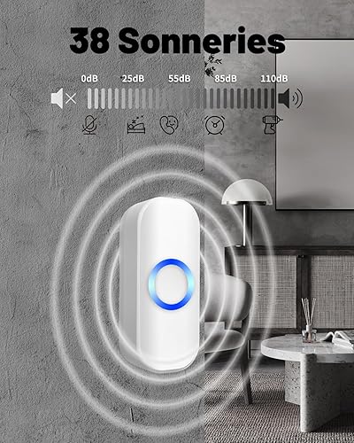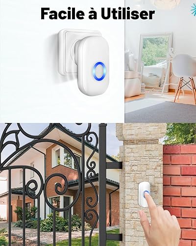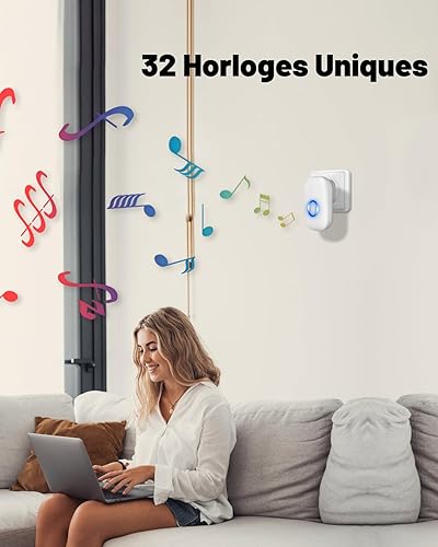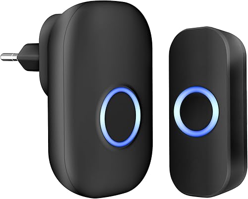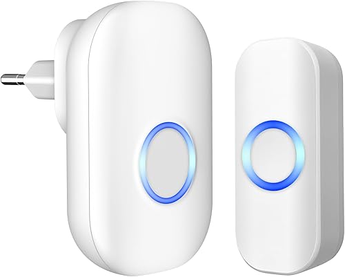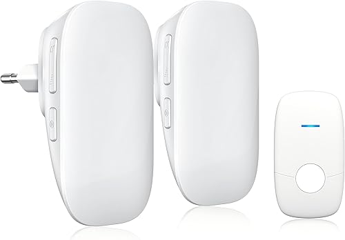 Funkklingel,JeaTone Türklingel Funk Set,150m Reichweite Funkklingel aussen wasserdicht IP44 Haustürklingel,32 Melodien,4 Lautstärkestufen und LED-Blitz,1 Plug-In-Empfänger und 1 Sender mit Batterie