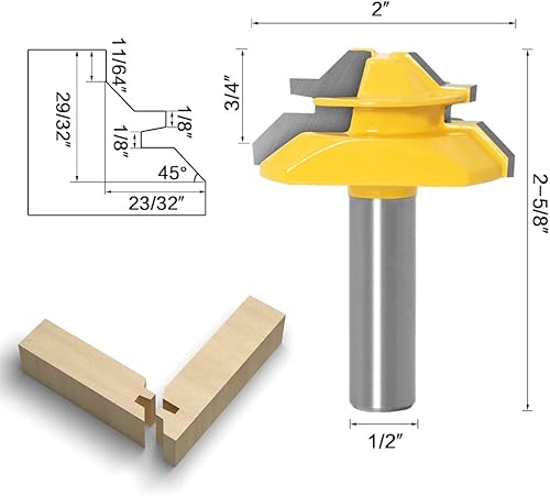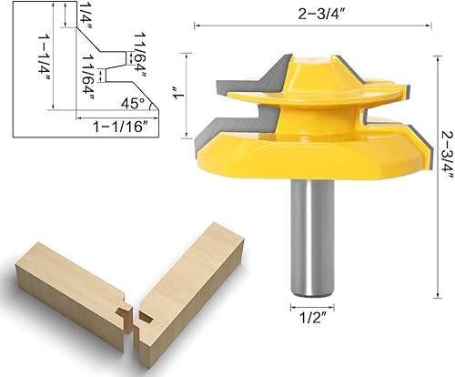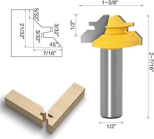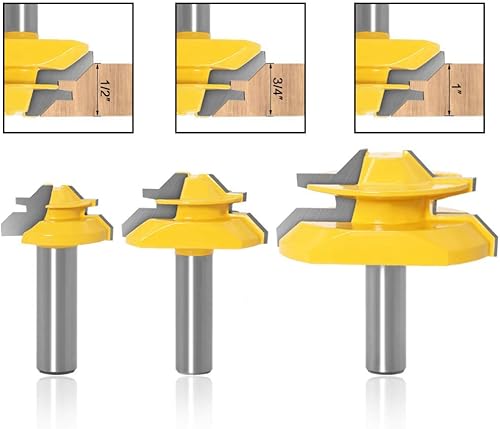 APlus 3tlg. 1/2 Inch 12,7mm Verleimfräser Gehrung Verleimfräser Oberfräse 45 Grad Lock Miter Router Bit Holzbearbeitung Fräser Schneidwerkzeug für Graviermaschine Trimmmaschine