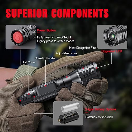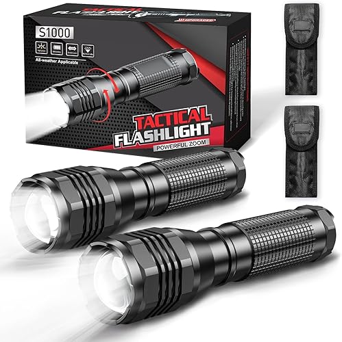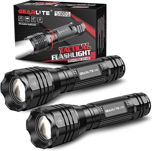 GEARLITE LED Taschenlampe Extrem Hell 2 Stück, Aluminium 4000 Lumen LED Taschenlampe Batteriebetrieben mit 5 Modi, IP65 Wasserdichte Handlampe Zoombar für Camping, Wandern, Outdoor, Notfall, Geschenk