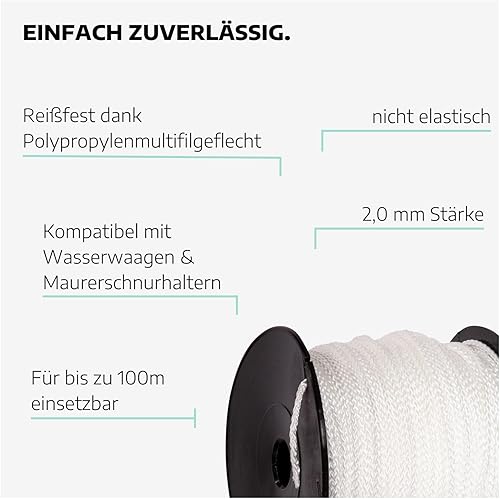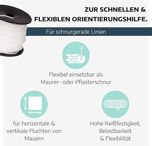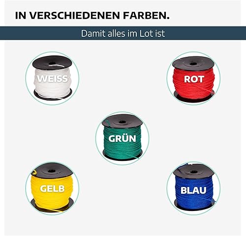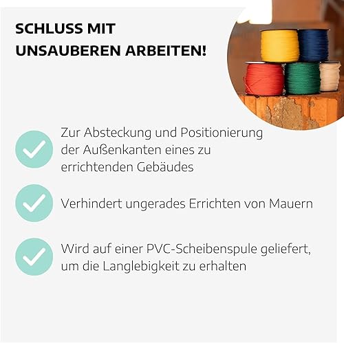 AWOTEX Pflasterschnur Weiß 2,00 mm I 6 Rollen à 100 Meter I Richtschnur für Pflastern I langlebig & reißfest I Polypropylen Bauschnur auf PVC Rolle I Maurerschnur für Wasserwaage