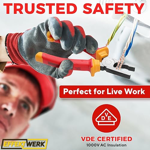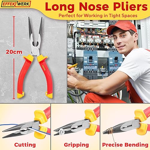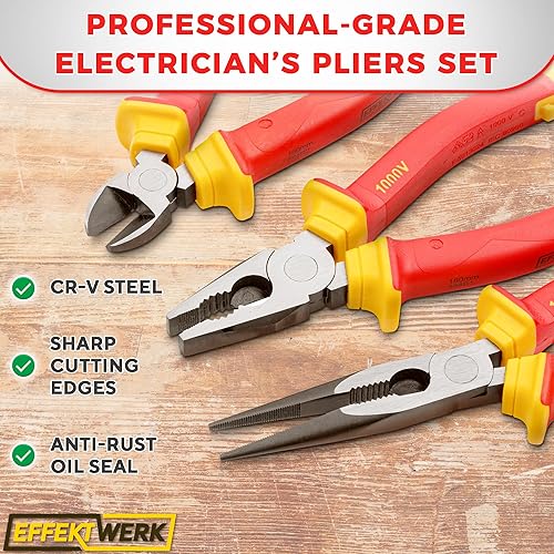 Effektwerk 3-tlg. Elektrozangen-Set, isoliert & VDE-geprüft, Kombinationszange, Lang-/Nadelzange & Seitenschneider/Seitenschneider