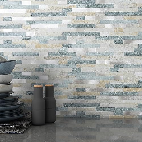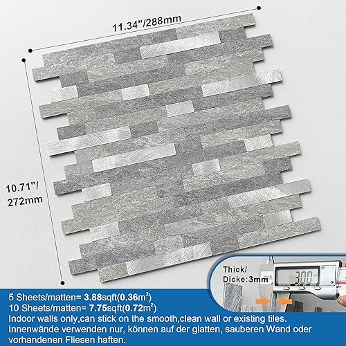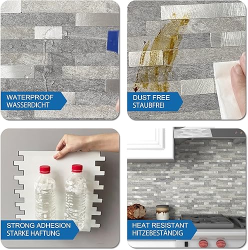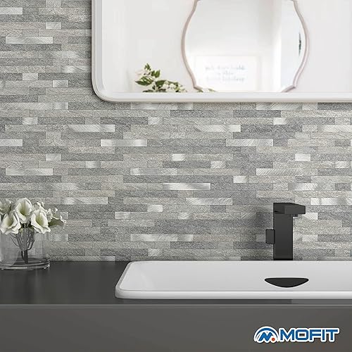 M MOFIT 3d Selbstklebende Fliesen Fliesenaufkleber Wandfliese Küche Mosaikfliesen Steinoptik Bad Wasserdicht(10 Matten,Zementgrau)