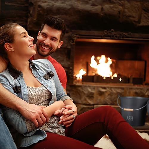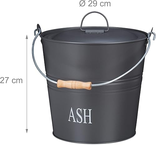 Relaxdays Ascheeimer mit Deckel, 12 Liter, Kohle & Asche, runde Aschetonne mit Tragegriff, Kamin, Ofen & Grill, grau