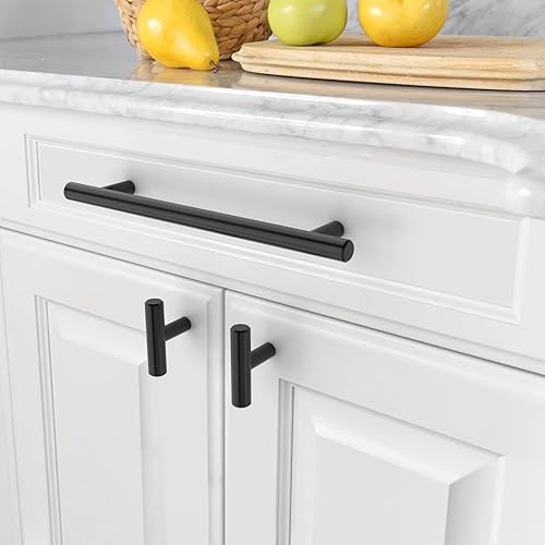 Amerdeco 10 Stück Möbelgriffe Edelstahl Schwarz Schrankgriffe Küchengriffe 128mm Lochabstand Schubladen Griffe Zinklegierung Schubladengriffe Griffe für Küchenschränke Kleiderschrank UK0024