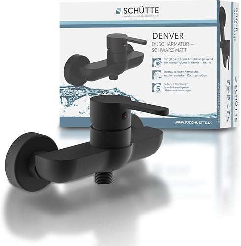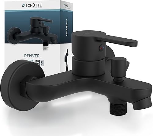 SCHÜTTE 44306 DENVER Wannenfüllarmatur Schwarz matt, Badewannenarmatur, Badezimmer Armatur, Mischbatterie für die Badewanne, Brausebatterie Wanne