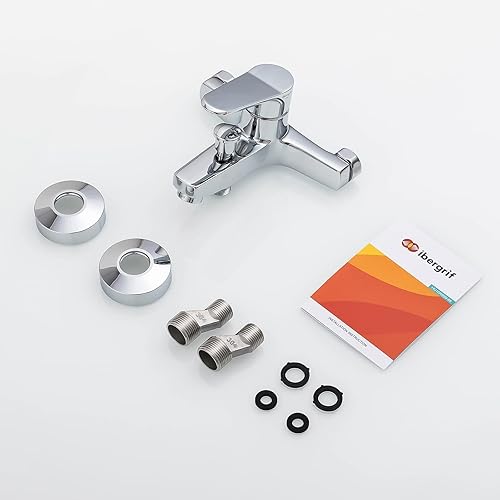 Ibergrif Duscharmatur, Einhand-Brausebatterie, Wandmontage, Wasserhahn Dusche Einhebelmischer, mit Duschkopfhalterung, Chrom M12059-1