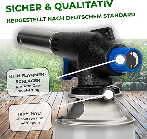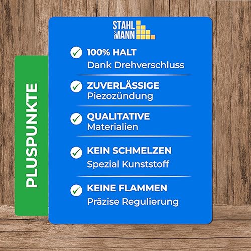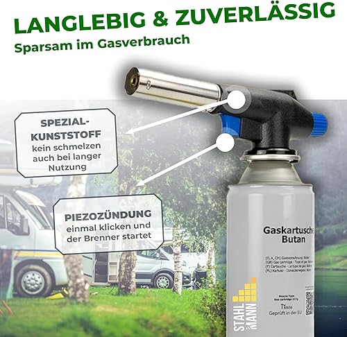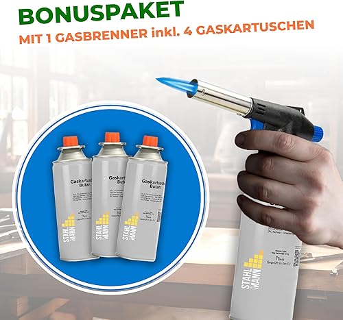 STAHLMANN ® Gasbrenner mit Kartusche 227g – Schweißbrenner max. 1300°C Temperatur – Lötlampe mit Piezozündung – Bunsenbrenner Küche -Küchenbrenner (4x Gaskartuschen)