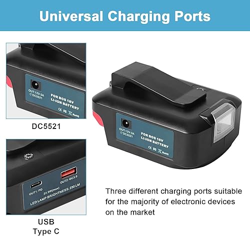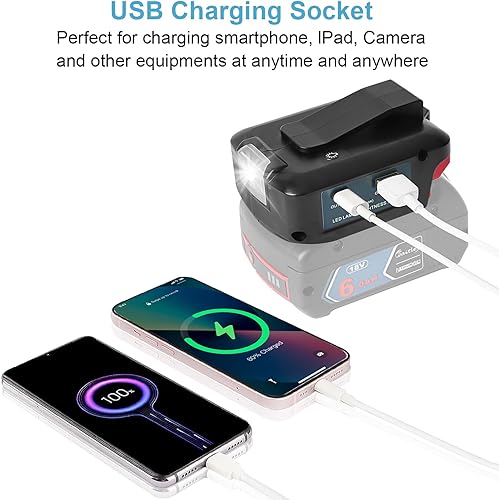 Adp05 Power Source Battery Adapter Arbeitslichtkonverter für Bosch 18 V Akku mit einem Paar USB-Telefon-Ladegerät-Schnittstelle, mit schnurloser DC-Port-Taschenlampe