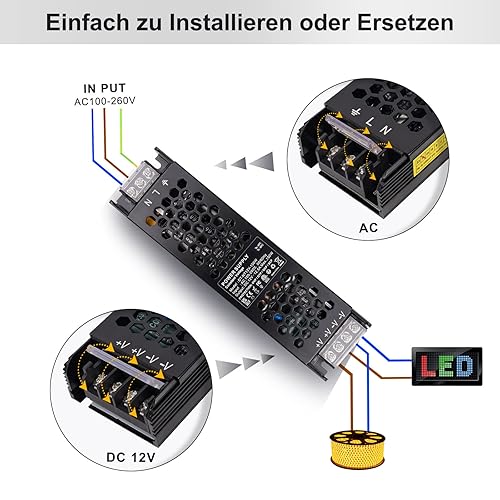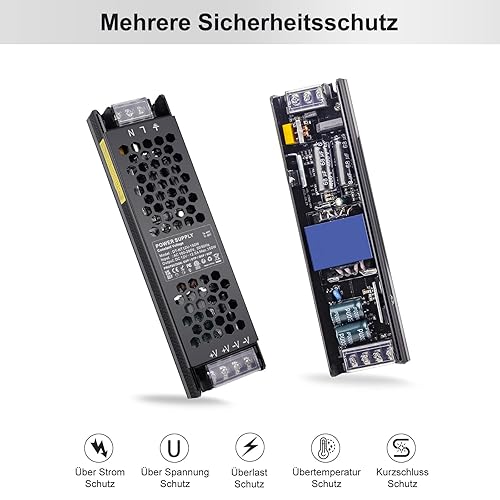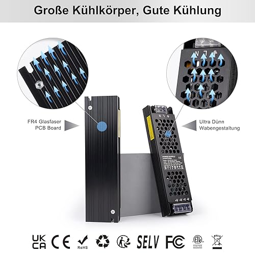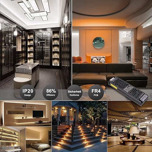 REYLAX LED Trafo 24V 150W, Flach Trafo 230V auf 24V 6.25A, LED Netzteil 24V DC Niedervolttrafo, Konstantspannung Transformator Schaltnetzteil, LED Treiber Adapter für LED Streifen, LED Lampen