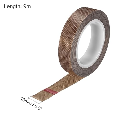 QUARKZMAN 9m/30 Fuß, 13mm/0,5 Zoll PTFE-Band, PTFE-Gewebeband, selbstklebendes PTFE-Folienband für Vakuumversiegelungsmaschinen, Handversiegler, hohe Temperaturen, braun