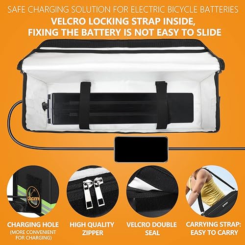 ImnBest Ebike Akku Tasche Feuerfest,Wasserdicht & Explosionssicher Lipo Safe Bag für Lagerung Für Lagerung,Transport,Aufladung (43CM)