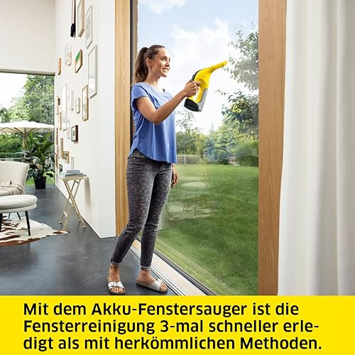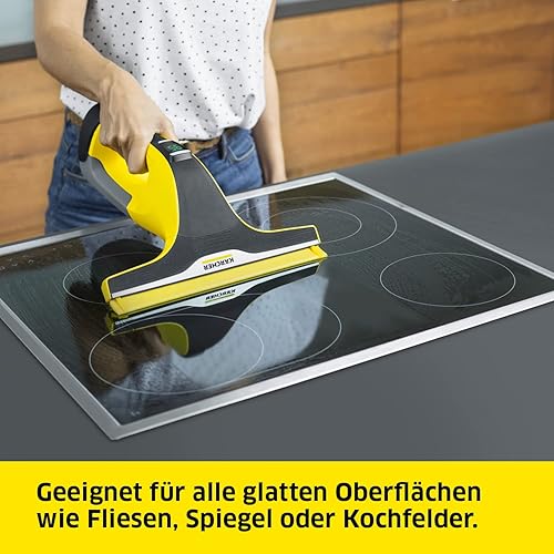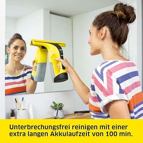 Kärcher Akku-Fenstersauger WV 6 Plus (Extra lange Akkulaufzeit: 100 min, wechselbare Absaugdüse, Sprühflasche mit Mikrofaserbezug, Fensterreiniger-Konzentrat 20 ml, ohne Sonderzubehör)