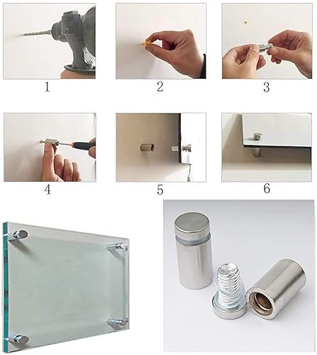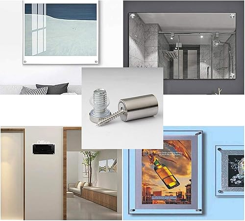 10 Stück 19X25mm silberne Edelstahl-Werbenägel, Glasbefestigungsschraube, Schildbefestigungshalter, hohle Abstandsschrauben aus Acrylplatte, Schilderbefestigungsklemme (mit Schrauben und Gummistopfen)