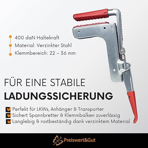 2x Ladungssicherung – Klemme für LKW und Anhänger | Effektive Transportsicherung mit Tragkraft 400 daN Klemmbalken und Kantenschutzwinkel Klemmbereich 22 bis 36 mm