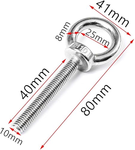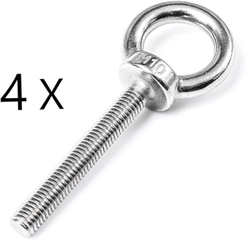 Dtoterul Ringschraube M10 Edelstahl 4 Stück Augbolzen M10 Ring Runde Augenschraube Augbolzen Hardware Ringschrauben Ösenschraube M10 304 Edelstahl Ringbolzen Schraube für Befestigens Hängens
