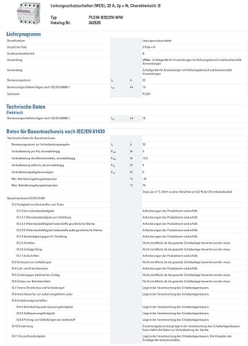 Eaton PLSM-B32/3N-MW Leitungsschutzschalter 32A 3+N-p B-Charakteristik LS-Schalter (242520 ALT 245048)