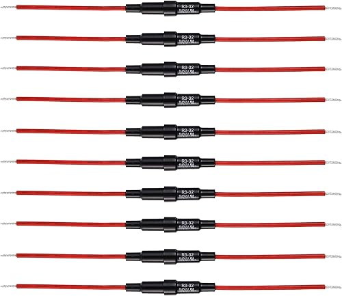 BOJACK 5x20 mm Sicherungshalter Inline-Schraubentyp mit rotem Draht mit 16 AWG + 15 Werten 150 Stück 5x20 mm schnelle Blasglas-Sicherungen 250 V 0,1-20A Sortimentskit