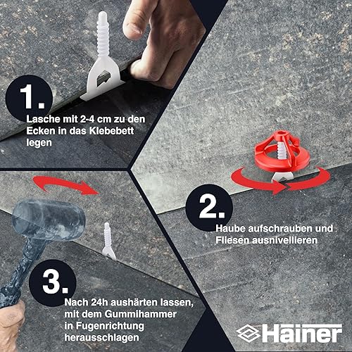 Hainer® Premium Fliesen Nivelliersystem 2mm Set – 300-teiliges Fliesenverlegehilfe Set, Fliesen Werkzeug für professionelle Ergebnisse (Starterset 2mm)