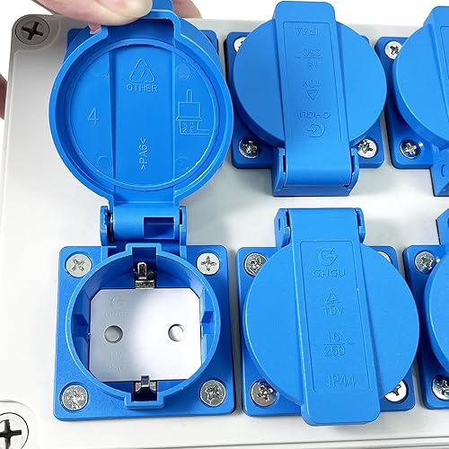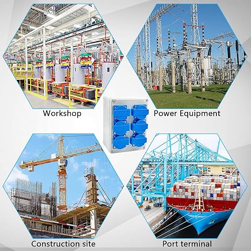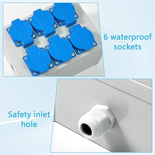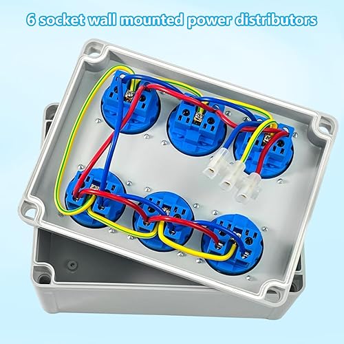 Wandverteiler Stromverteiler 6 x 220V, Wasserdichtheitsklasse IP54, Flammhemmende Technische Kunststoffe, Aufputz Verteiler für Indoor/Outdoor-Bereich Uswgeeignet