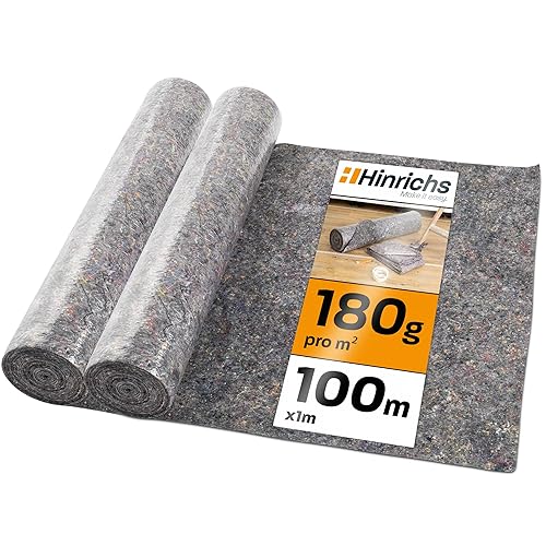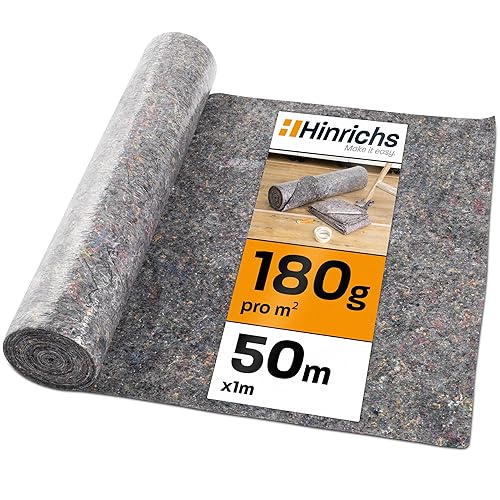 Hinrichs Malervlies 50m x 1m Rolle 180g/m² - Durchsickerungsschutz für Flüssigkeiten - Abdeckvlies - Abdeckfliesse für Boden mit Anti-Rutsch Beschichtung - Malerfliesrolle Abdeckflies als Abdeckung