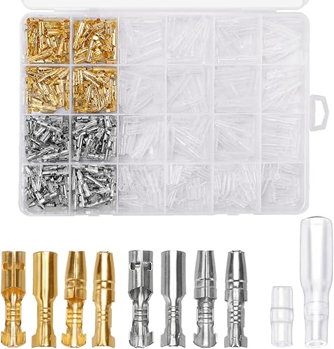 YIXISI 400 Stücke 3.9mm Rundsteckverbinder Kit Messing Bullet Male & Female Wire Terminals Stecker mit Isolationsabdeckung, für Motorrad Motorrad Auto Boote Elektrische Instrumente, Golden und Silber