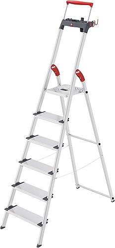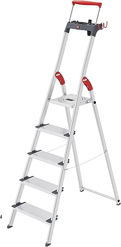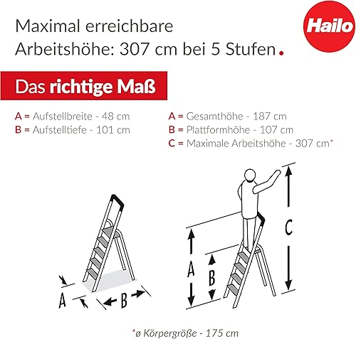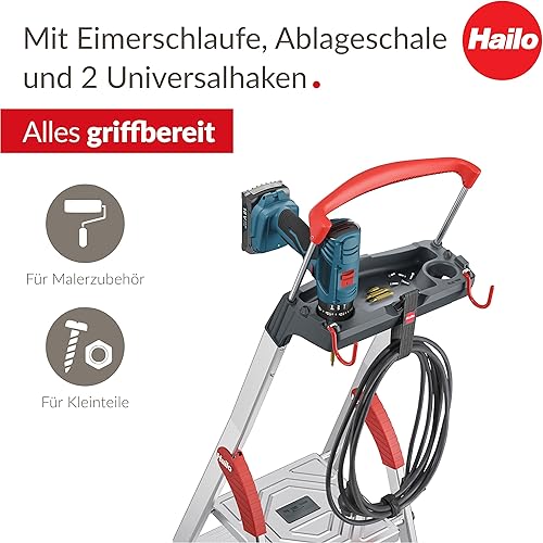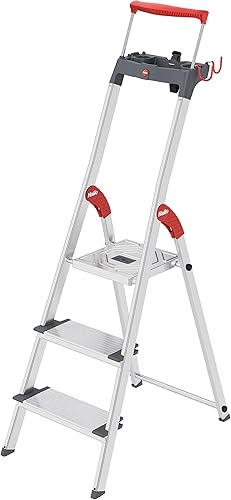 Hailo L84 ComfortLine Alu-Sicherheits-Stehleiter - 3 XXL-Stufen belastbar bis 150 kg - Tiefe Standfläche & Haltegriff - Stehleiter mit Ablage - Aluleiter Made in Germany - Leiter rostfrei - Silber