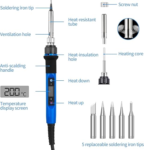 WinGluge 80W Lötkolben Set, Lötstation mit Temperatur Einstellbar 180-480°C, Lötset mit Lötdraht, Soldering Iron Kit mit LED Bildschirm und 5 Lötspitzen zum Heißschneiden Schweißen Brandmalerei