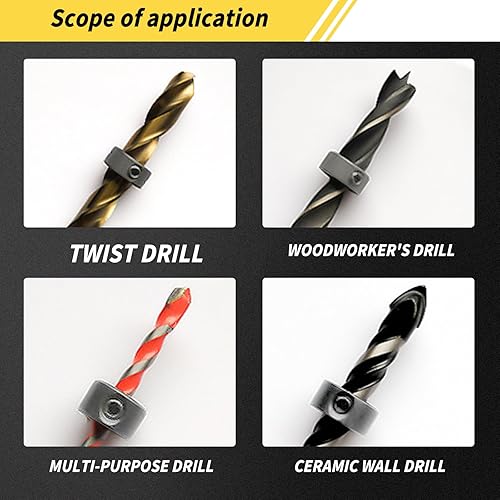8 tlg Bohrer Tiefenanschlag Set,HSS Tiefenanschlagringe Tiefenbegrenzer Bohrer Ring Locator mit Sechskantschlüssel Tiefenanschlagring Tiefenstopp Dübeln für Holzbearbeitungsbohrarbeiten 3-10MM