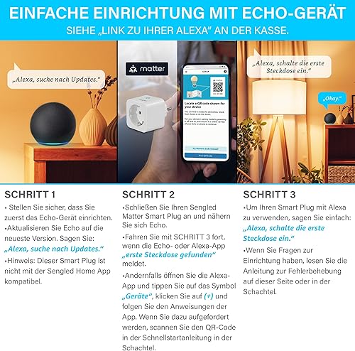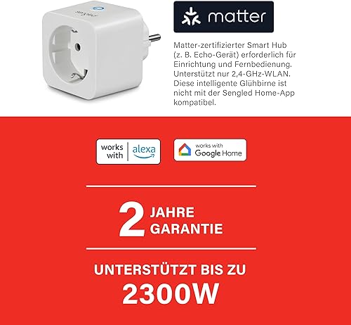 Sengled Smart Plug, für Matter geeignet, funktioniert mit Alexa, sofortige Kopplung, unterstützt bis zu 2300 W, Matter-kompatible Plattform erforderlich, 2,4 GHz, WLAN, 1er-Pack