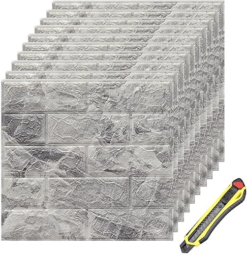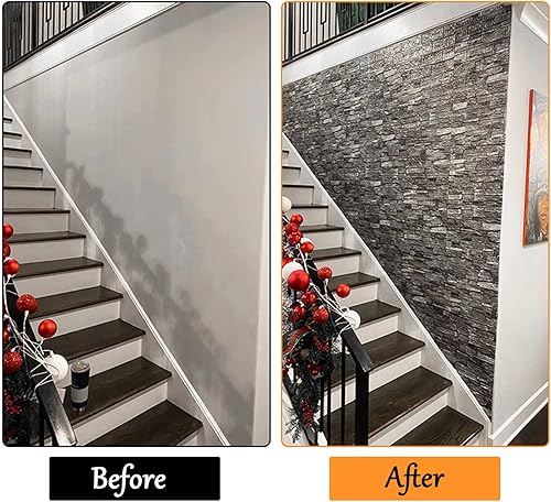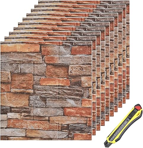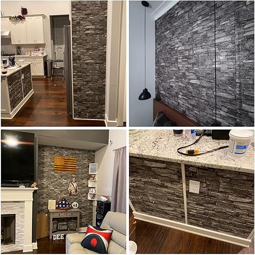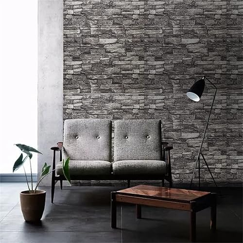 Hyesrtey 10 Stück 3D Wandpaneele 35x38.5cm Selbstklebend Küchenrückwand Ziegel Tapeten Steinoptik 4 mm Steintapete Wandaufkleber Wasserdicht Wandtapete für Küche Schlafzimmer (Schwarz)