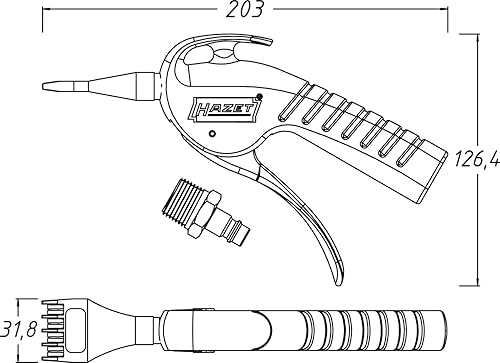 HAZET Ausblaspistole 9040P-5 I breite Flachdüse zur Flächenreinigung, 6 bar Betriebsdruck mit ergonomischem Handgriff I für ein schnelles Entfernen von Spänen oder anderen Fremdkörpern