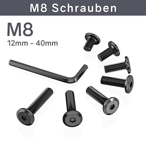 30 Stück Schrauben M8 x 40 mm, Flachkopfschrauben M8 Innensechskant Edelstahl A2 V2A Vollgewinde Schwarzes Oxid mit Innensechskantschlussel