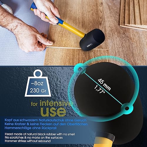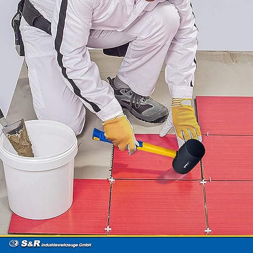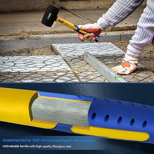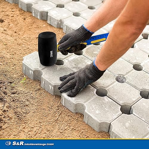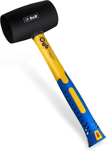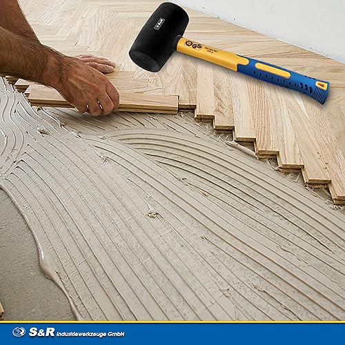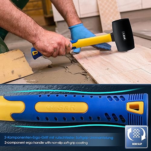 S&R Gummihammer Schwarz 560g aus Naturkautschuk mit rutschfestem stoßdämpfendem Fiberglasstiel, ⌀=60 mm, Schonhammer für Außenarbeiten zB. Pflastersteine, Fliesen, Klinker, Camping - GS geprüft