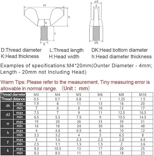 BOZONLI Flügelschrauben, Flügelbolzen, Edelstahl Maschinenschrauben Schrauben, M10×25mm,2 Stück