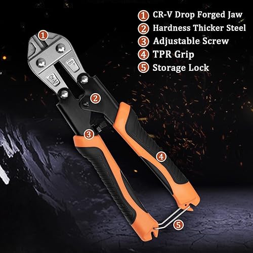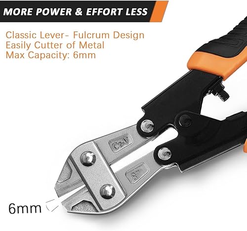 8-Zoll-Stahlbolzen Cutter, Cr-V Mini Drahtschneider, Kabel, Kette, Federschere, Clipper Mit Komfortablem, Weichem Gummigriff, Schneiden Für Ketten, Vorhängeschlösser, Drahtzäune, Maschendraht