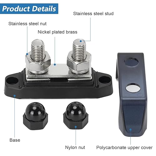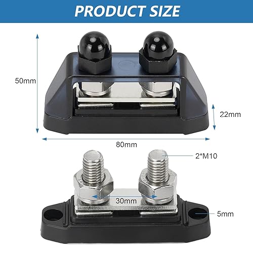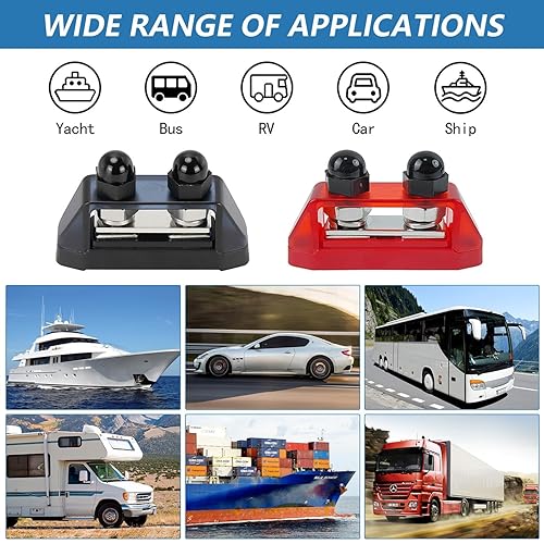 2 Stück DC Sammelschiene 12V- 48V, 250A Verteilerblock, Rot + Schwarz Stromverteiler, M10 Bolzen Batterie Busbar, für Automobil RV Solar Marine Boot LKW
