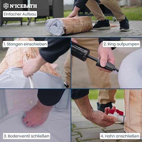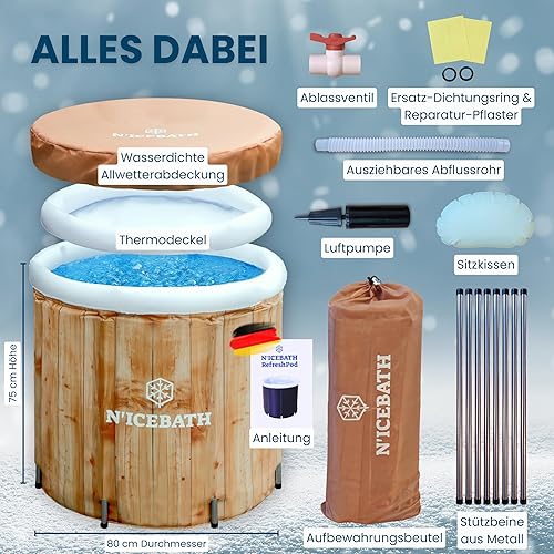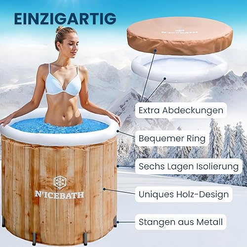 N'ICEBATH Eisbad RefreshPod 80 cm Ø x 75 cm in Holz-Optik - Eisbaden Tonne - faltbare Eisbadewanne für Profis, Sportler und Athleten - mit Abdeckung - Outdoor und Indoor