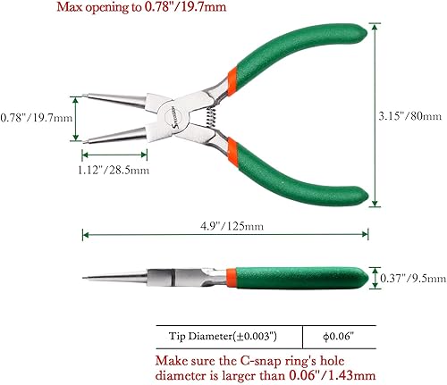 SPEEDWOX Sicherungsringzange, 12,7 cm, Sprengringzange, externe Präzisions-Cir-Clip-Ringzange, gerade Backe, für Ringentferner-Halter