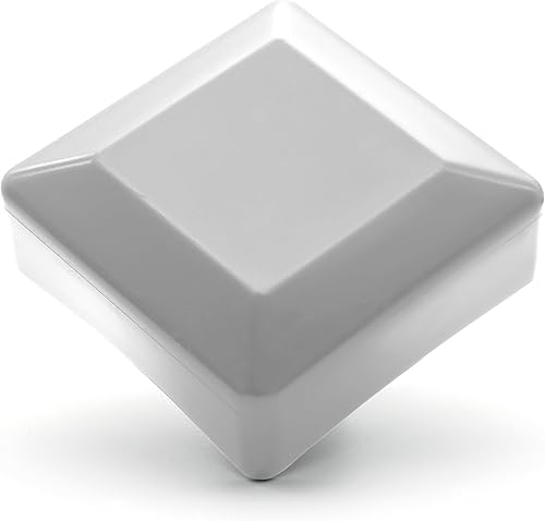 Enkotrade 4 Stück Zaunkappen Weiß für Außenmaß 70x70mm, Rohrkappen aus hochwertigem Kunststoff, Pyramide Quadratisch Zaunpfostenkappen Pfahl Deckel Zaunabdeckung