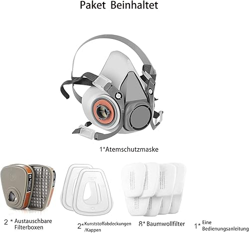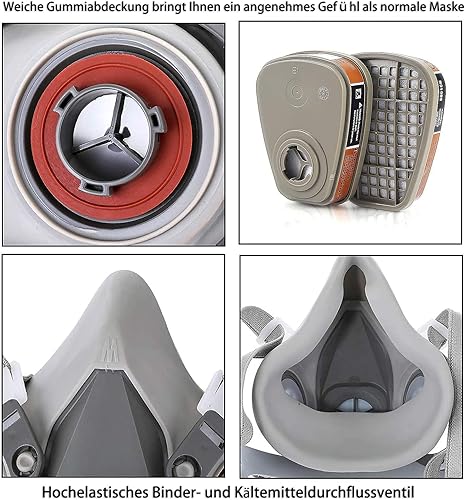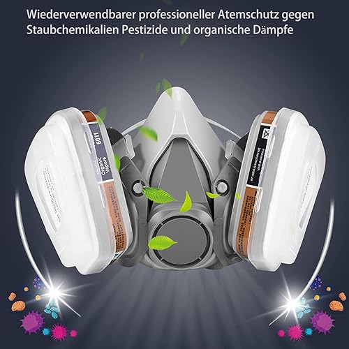 LAMANICE Chemische Atemschutzmaske, Wiederverwendbar Gesichtsschutz, für Dämpfe, Farbe, Staub, Polieren, Sprühen, Maschinenpolieren, Formaldehyd, Schleifen, Epoxidharz