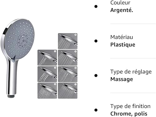 Duschkopf Handbrause, LEEFE 152mm Großes Regenbrause - 7 Strahlarten, Chrom