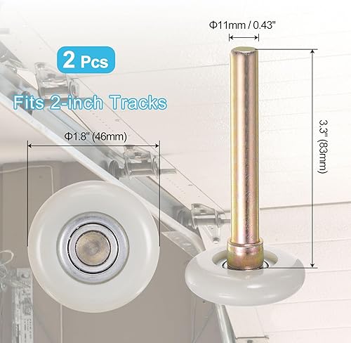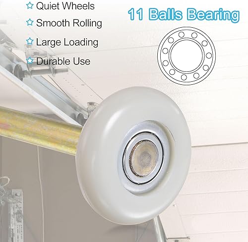 QUARKZMAN 2 Stück 1,8' Nylon Garagentorrollen für 2' Garagenbahn, 3,3' Stiel leise Garagentorrollen, 6200zz Präzisionslager 11 Kugeln, Weiß