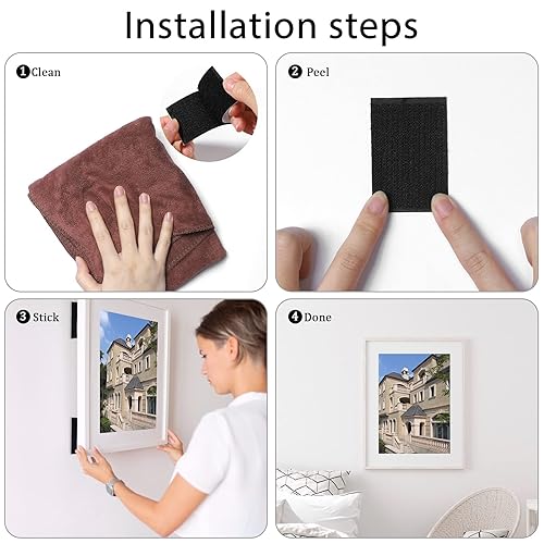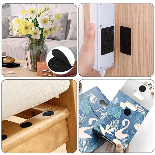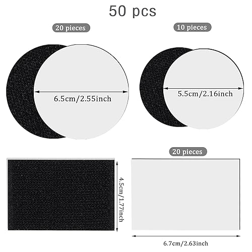 QH-Shop Klettband Selbstklebend 50 Stücke Extra Stark Rechteck Rund Doppelseitig Klebend Wiederverwendbares Klettverschluss Selbstklebend für Wände Boden Tür Metalle Gläser Schwarz