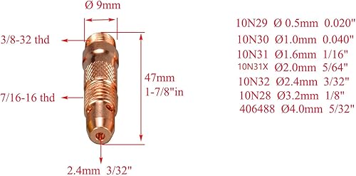 RIVERWELD WIG-Kollektorgehäuse 10N32 2,4 mm Lochdurchmesser passend für DB PTA SR WP 17 18 26 TIG-Schweißbrenner, Packung zu 10