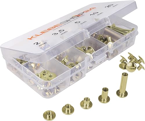 Klebeshop24 Buchschrauben Set | Sortimentsbox mit 5 verschiedenen Größen | 2 bis 20 mm Füllhöhe | Verschiedene Ausführungen / (Vernickelt)